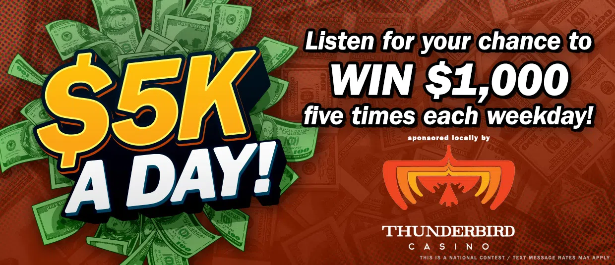 Listen for your shot at scoring some serious cash every weekday! Five winners. One Thousand dollars each.